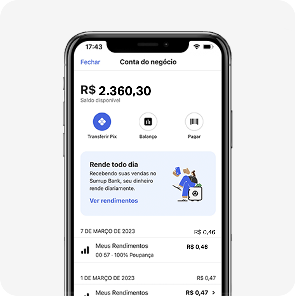 Receba seu dinheiro no SumUp Bank e garanta rendimento de até 300% da poupança, conforme o uso do cartão